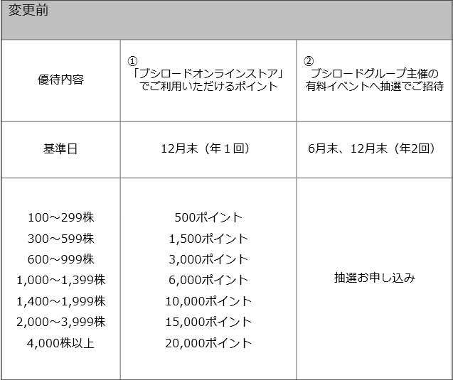 2025年10月1日を効力発生日とした株式分割に伴い、下表のとおり株主優待制度を変更いたします。(下線部分は変更箇所)