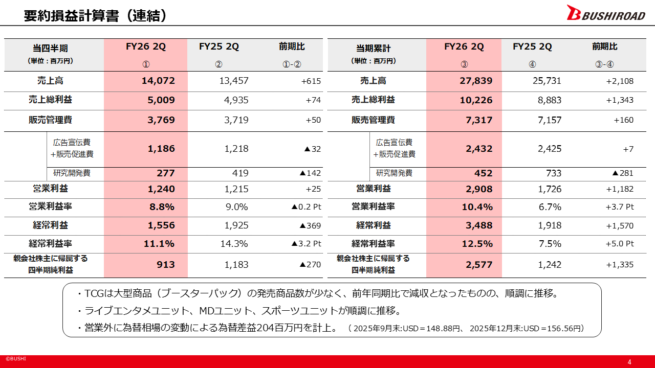 2026年6月期 第2四半期の決算説明をさせていただきます。