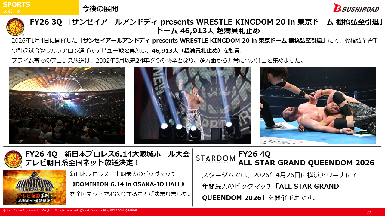 新日とスターダムは、今期後半、そして来期に向かってかなり飛躍してくれるのではないかと考えております。