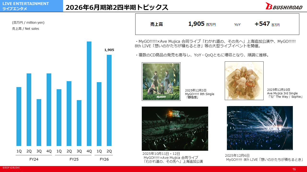 第3四半期以降も複数の大型ライブを開催予定です。