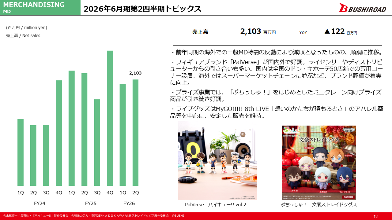 フィギュアブランド「PalVerse」が国内外で好調です。国内では全国のドン・キホーテ50店舗への専用コーナー設置、海外では大手スーパーマーケットチェーンへの展開など、ブランド評価が着実に向上しております。